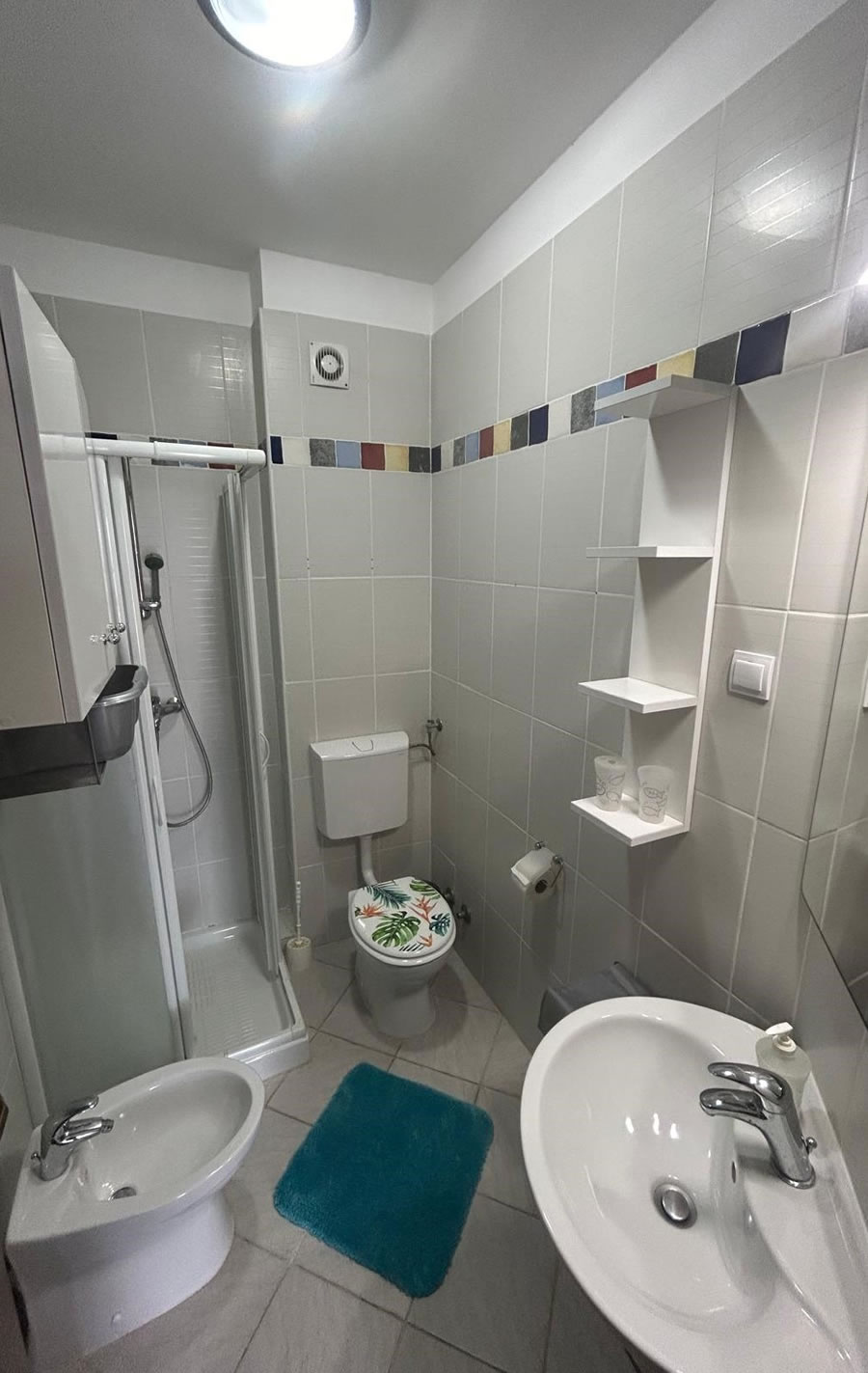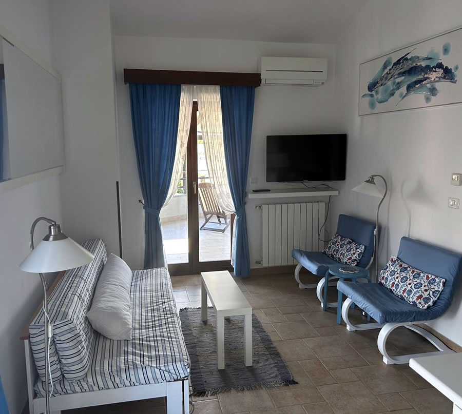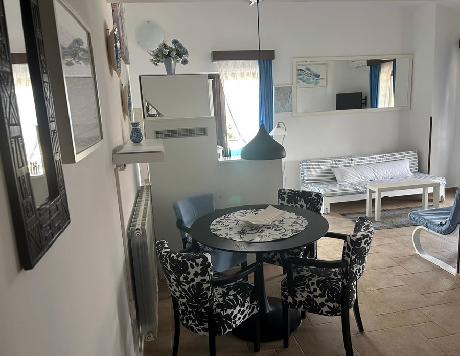 The apartment has one bedroom (with a 160x200 cm double-bed and air conditioner), an open space dining and living room combo (40” smart TV, air conditioning and Wi-Fi), a well-equipped open kitchen (electric and gas stove combo with oven, dishwashing machine, fridge with freezer, washing machine, microwave, toaster, coffee machine and a water kettle) and a bathroom (shower, bidet and unlimited hot water).